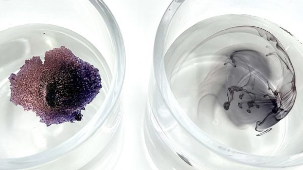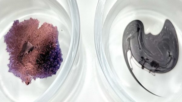 油性インク(左)と水性インク(右)を
